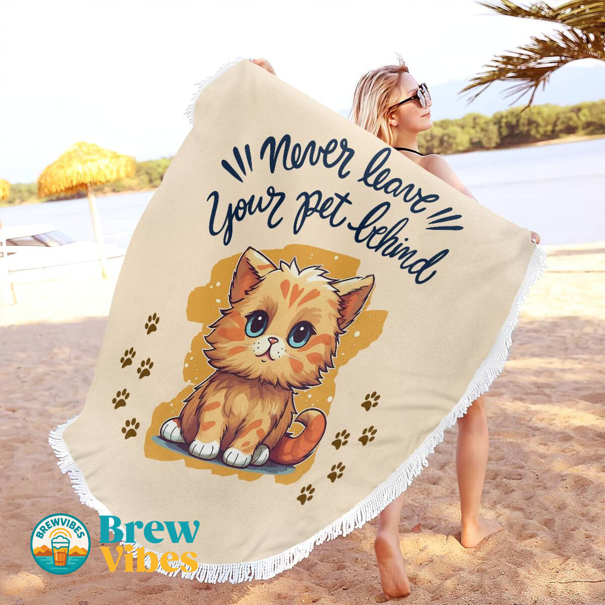 "Never leave your pet behind" Quotes Round Beach Towel -